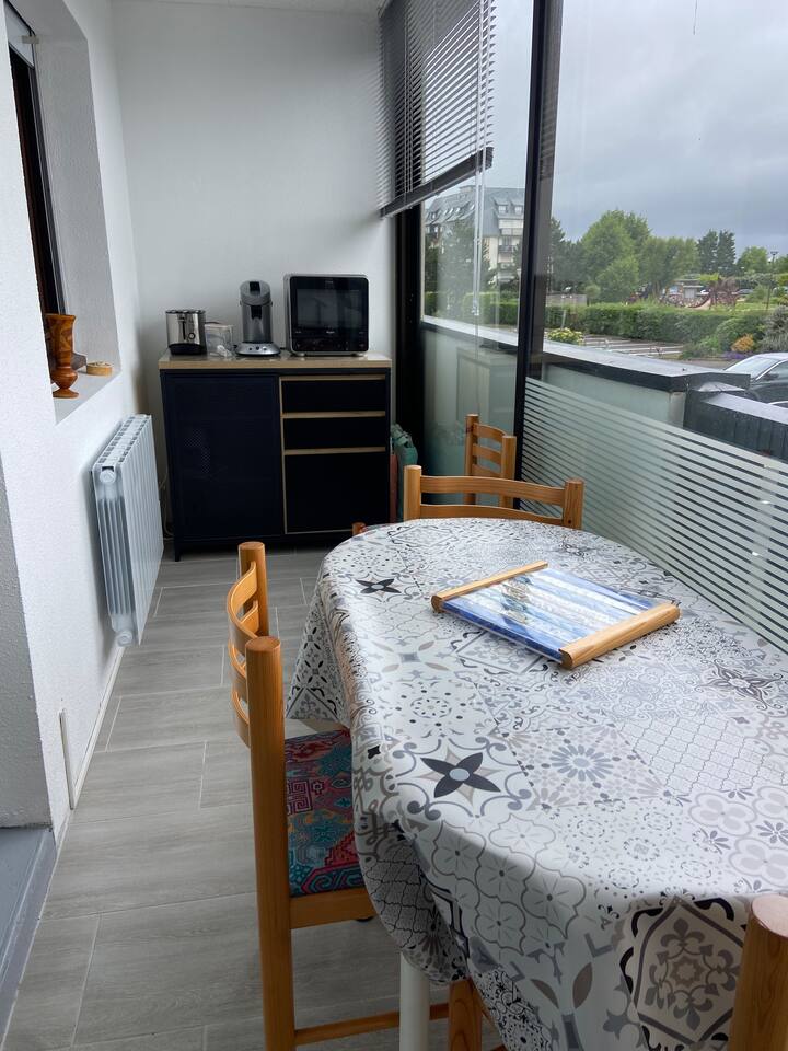 Appartement refait à neuf sera idéale pour votre séjour a Villers sur mer. Situé au cœur du quartier plage (au bout de la rue) et marais de Villers sur mer, sa loggia avec vue sur le Paléospace et le marais vous enchantera. Il est au premier étage ( escalier ou ascenseur) d’une résidence sécurisée avec place de parking privée.l’entrée vous accueille avec son armoire de rangement et sa porte de discrétion. Il est équipé d’une chambre avec une grande armoire et un lit double 140×200, d’une cuisine ouverte sur le salon avec une télévision connectée et d’un canapé lit qui peut servir de couchage 140×200 si besoin (éventuellement un enfant en personne supplémentaire sans frais supplémentaire).
