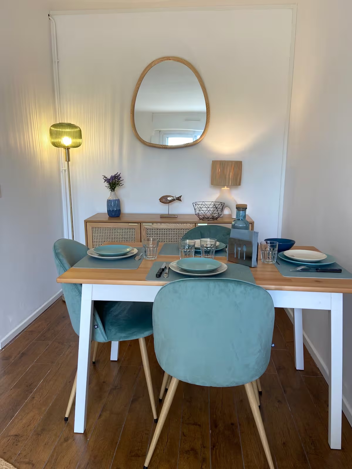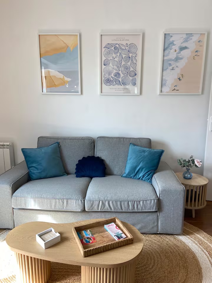La résidence, les Portes de la Mer se situe juste à côté du site protégé du Marais, ainsi que du musée du Paléospace. À 5 minutes à pied des commerces du quartier entre Mer et Marais, et 10 min à pied de la plage. LA PIÈCE DE VIE compte un Canapé confortable et non convertible, vrai coin repas avec table et chaises pour 4 personnes, TV écran plat, Wifi, bureau, petit balcon ensoleillé l’après-midi avec une petite vue mer. LA CUISINE Ouverte sur la pièce de vie, vous trouverez tout le nécessaire pour cuisiner en vacances. Lave-vaisselle, cafetière Nespresso, micro-onde, four, vaisselle neuve et coordonnée. LA SALLE DE BAIN est munie d’une machine à laver le linge, d’un sèche-serviette, de rangements et d’un sèche-cheveux. LA CHAMBRE 1 dispose d’un grand lit double (160×200) et d’un espace de rangements. Le linge de maison n’est pas inclus, vous avez la possibilité de le louer auprès de la conciergerie. Velux avec volet occultant. LA CHAMBRE 2 se compose de deux lits simples (90×200) et d’un espace de rangements et de Velux avec volet occultant. Une armoire de rangement supplémentaire est à votre disposition dans le couloir.Vous aurez une place nominative de parking dans la résidence. L’appartement est situé au 3 eme étage avec ascenseur ou escalier. Au moment de votre réservation, un livret d’accueil vous sera proposé pour préparer votre séjour.