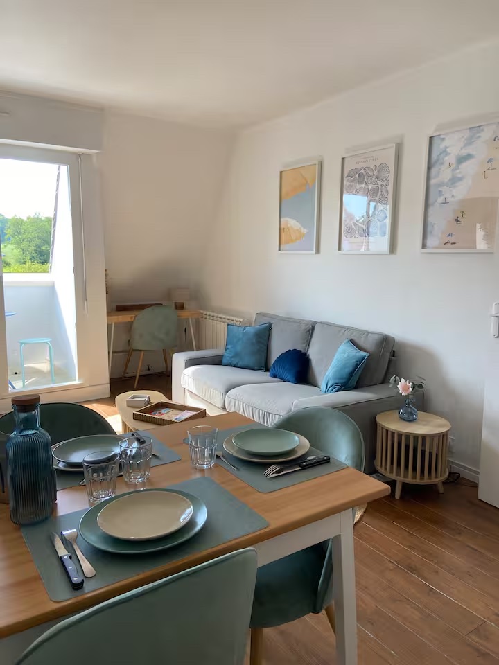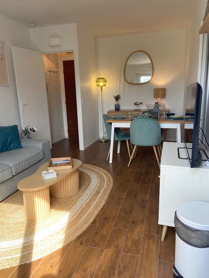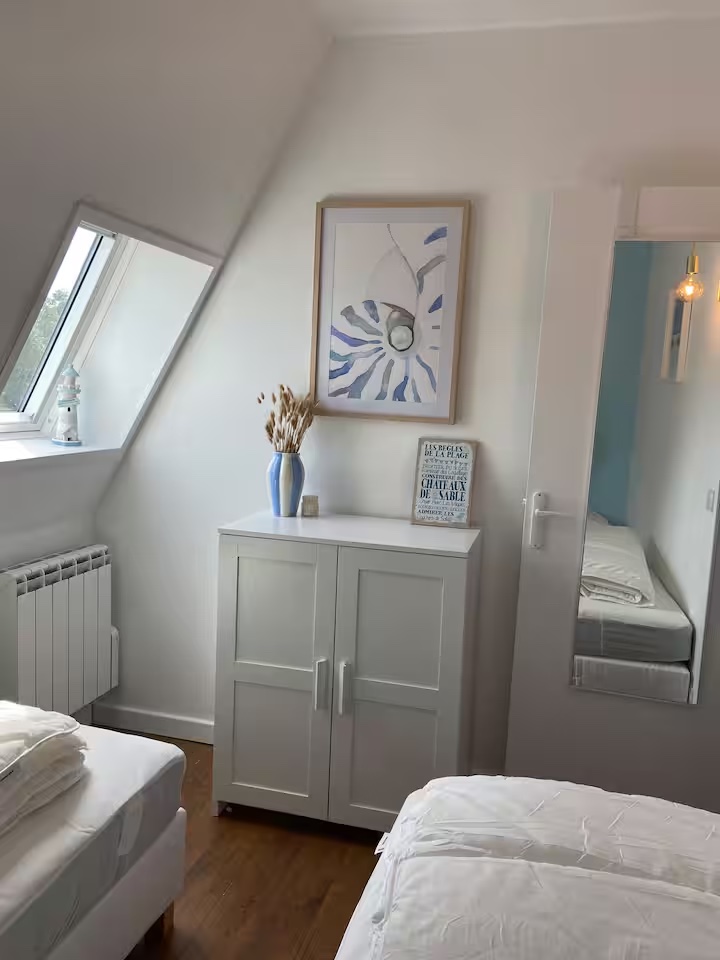 Bienvenue dans notre logement l’Écrin Marin. En famille ou entre amis, détendez-vous dans une résidence bien entretenue, calme et sécurisée, cet appartement refait à neuf vous séduira pour votre séjour en Normandie. Pour 4 personnes, l’appartement est muni de 2 chambres, ascenseur, parking, wifi, petit espace extérieur, WC indépendant, soleil en fin de matinée et en après midi.